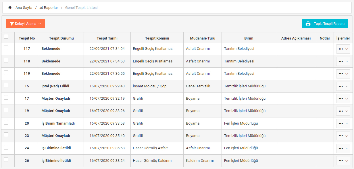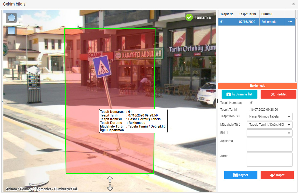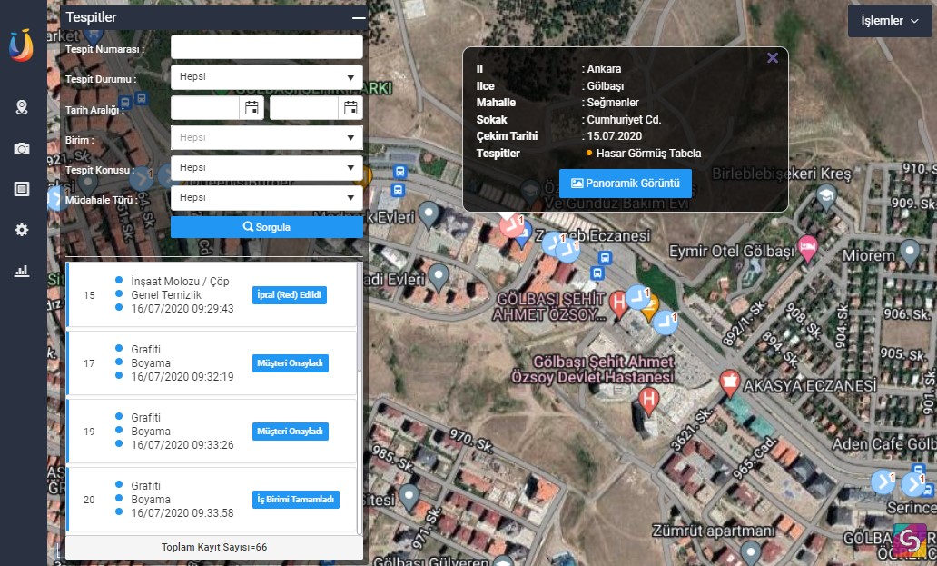 Denetimde tespit edilen tüm problemler tek harita ekranı üzerinden takip edilir.
